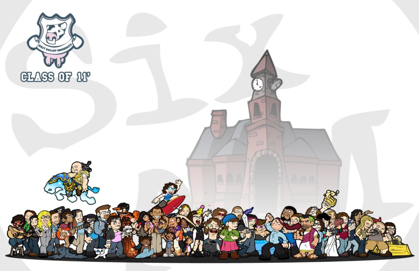 In five years we could have an office somewhere where some of us put all our computer gear down and throw paper airplanes at each other (just kidding, but seriously). I would love to see our base of supporters to have grown and our characters (Jason, Stan and Kal) become more recognizable in popular culture. These guys we have created from our own personalities have something to speak to the world about our generation. Hopefully, our ideas will have bloomed into a universe of characters that have lives and histories that people can follow – A Six AMiverse of sorts, and many of those characters being real people with real creative projects out there – connecting a community of artists who appreciate what we’re trying to do. And I won’t lie, I’d like to see Six AM support at least one of us in a more full-time capacity so that we can make this universe more and more real.