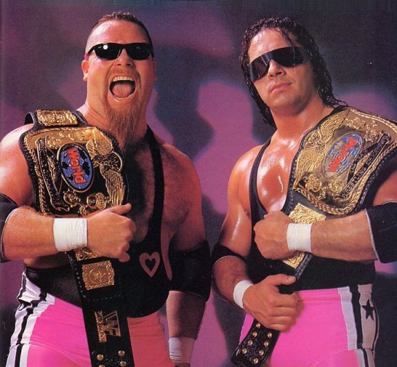 9. Legion of Doom: It was a big deal when the Road Warriors arrived in the WWF. Even if you didn’t watch the NWA regularly, you knew the legend of these Mad-Max-looking monsters. Animal and Hawk defeated the Nasty Boys at SummerSlam 1991 to begin their first reign as Tag-Team Champions. Their second reign occurred in 1997 when they defeated The Godwins. You knew what you were going to get when “OH WHAT A RUSH” came blasting from arena speakers. They were intensity personified, which made them the most dominant and memorable team of all time.