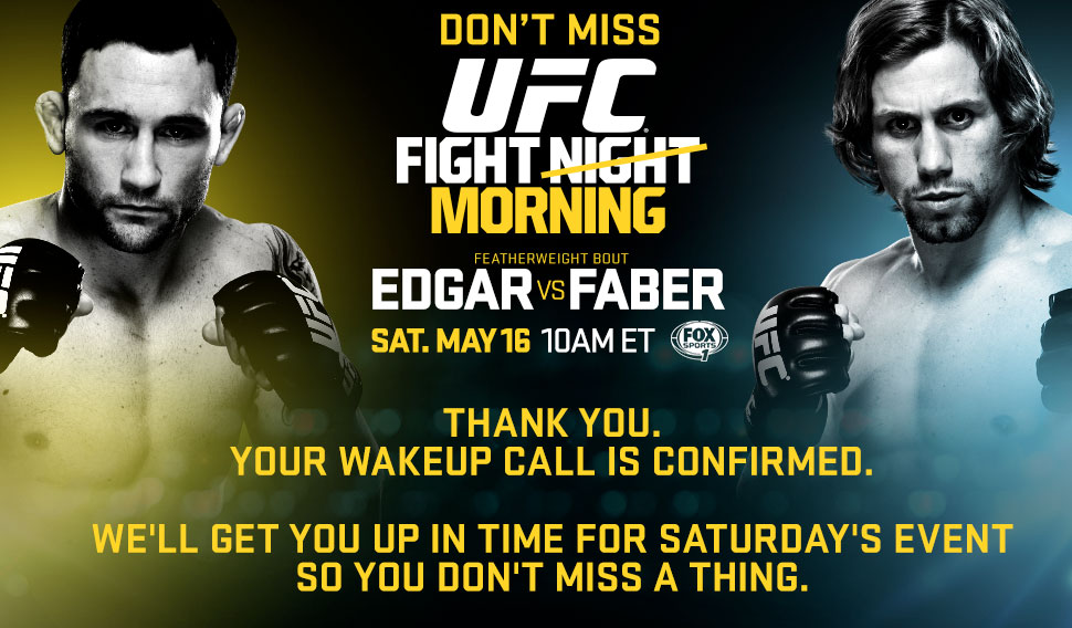 Counting on fans to not sleep in on a Saturday morning isn’t lost on the UFC. They’ve gone the extra promotional mile in offering to call those who enter their phone number on a special section of their website to receive a fight morning wake-up call.