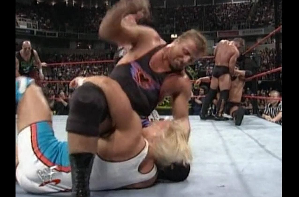 Jarrett jumped Owen in the aisle as he made his entrance into the Rumble. Much to the surprise of Jarrett, Owen returned and sent his foe flying with a crazy flip bump over the top rope. Holy &%$@ was my instant reaction to an underrated but pretty cool Rumble elimination.