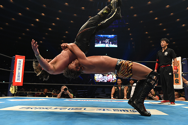 Chain wrestling in the opening moments was crisp, fast and intense. Omega hit death-defying Asai moonsault off the top rope onto the floor after he had lost his balance and caught himself. Omega attempted a dragon suplex off the top rope, which was a pivotal moment in their first match. Okada blocked it and hit a Death Valley Driver onto the ring apron.