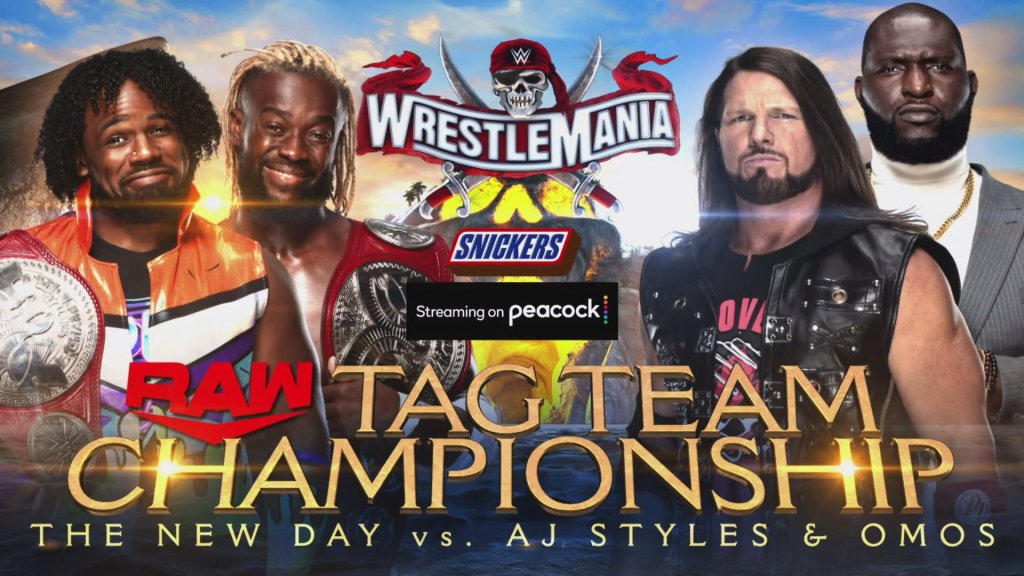 Raw Tag Team Championship – The New Day vs. AJ Styles & Omos: Kofi Kingston and Xavier Woods just won the belts for the 11th time. However, this match’s hook is all about AJ Styles’ colossal bodyguard’s in-ring debut, Omos.