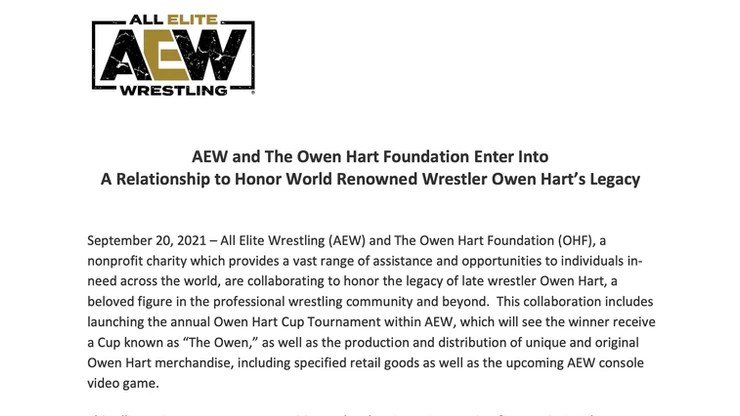 AEW will also produce an annual Owen Hart Cup Tournament where the winner will receive a Cup called “The Owen.”
