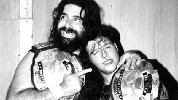 In the summer of 1994, Cactus Jack and Terry Funk were scheduled to wrestle Public Enemy. However, Funk no-showed the event. With the threat of forfeiture looming, Cactus went backstage and literally dragged out the unwilling plucky underdog in Mikey Whipwreck to be his partner.