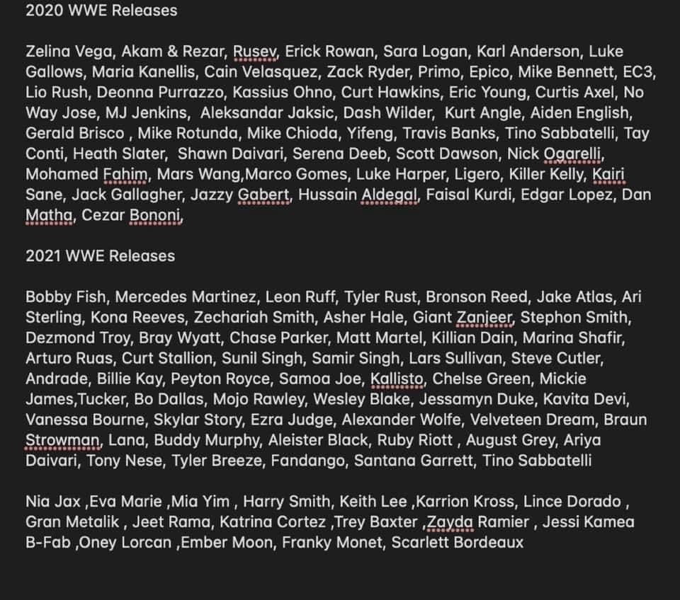 NXT releases were Scarlett, Ember Moon, Franky Monet, Jessi Kamea, Katrina Cortez, Jeet Rama, Oney Lorcan, Trey Baxter, and Zayda Ramier. There seem to be new reports coming out every couple of hours on why a person was released, their reported backstage reputation, and the added complexity of vaccinations.