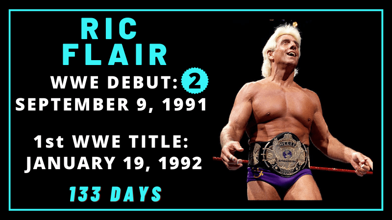 Sgt. Slaughter and Ric Flair won their first WWE Championship in 4 months and 11 days. They both made their WWE debut on September 9 and won the title on January 19 at the Royal Rumble (1991 & 1992).