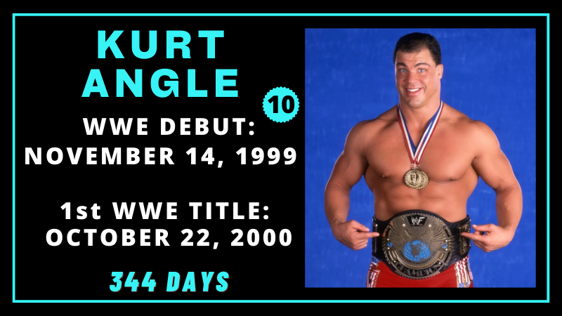 Angle’s first 11 months and 9 days as a WWE superstar included winning the I.C. Title, European Title, and King of the Ring tournament before beating The Rock at No Mercy 2000 to win the big one.
