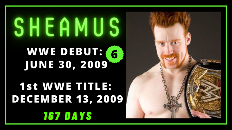 Sheamus won the “Breakthrough Battle Royal” for those who had never won a world title and beat John Cena in a Tables Match at TLC to become the first Irish-born WWE Champion. 5 months and 14 days to win the title faster than anyone in the brand split era.
