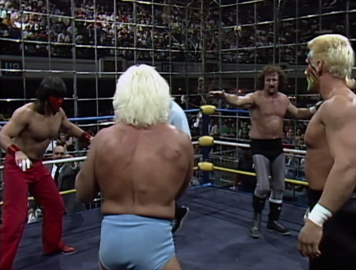 Thunder Dome! A precursor to Hell in Cell saw Flair and Sting team up against The J-Tex Corporation, comprised of The Great Muta & Terry Funk, managed by Gary Hart.